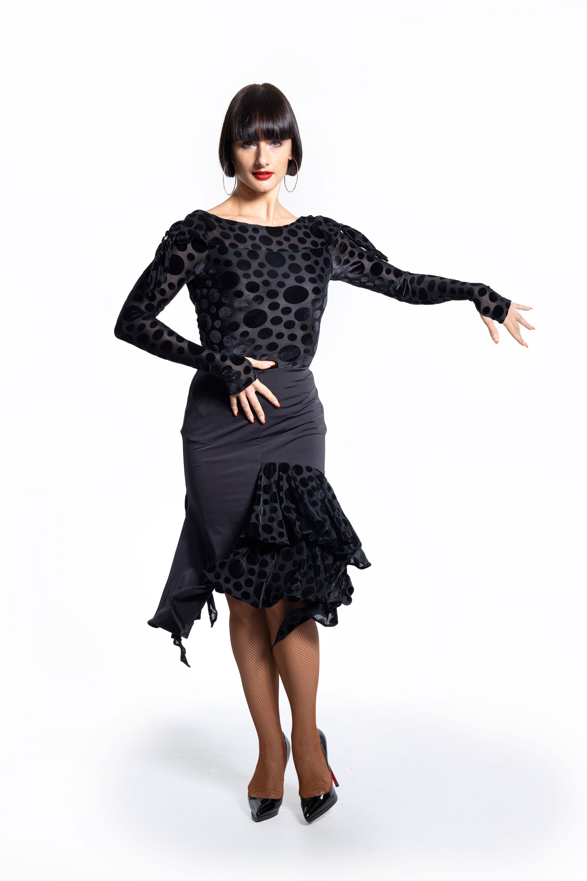- Two layers polka dot pattern ruffles at both side bottom
